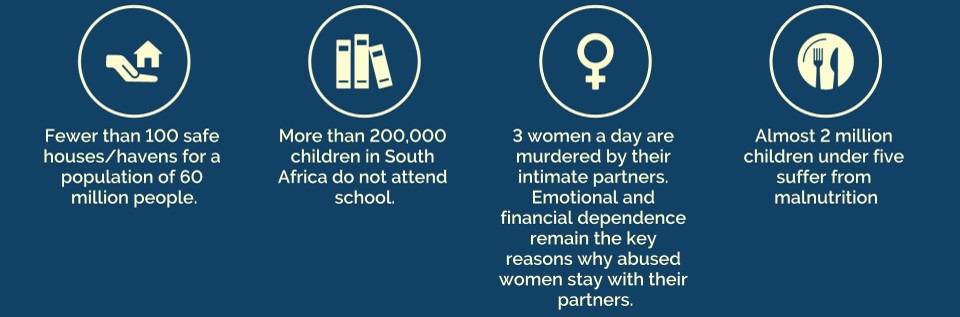 GBV Kits South African women and children need our support, with counselling as well as clothing items. We assist with kits that contain, a set of clothes, toiletries and a snack. Help Lwandiselo with these kits. South African GBV Stats